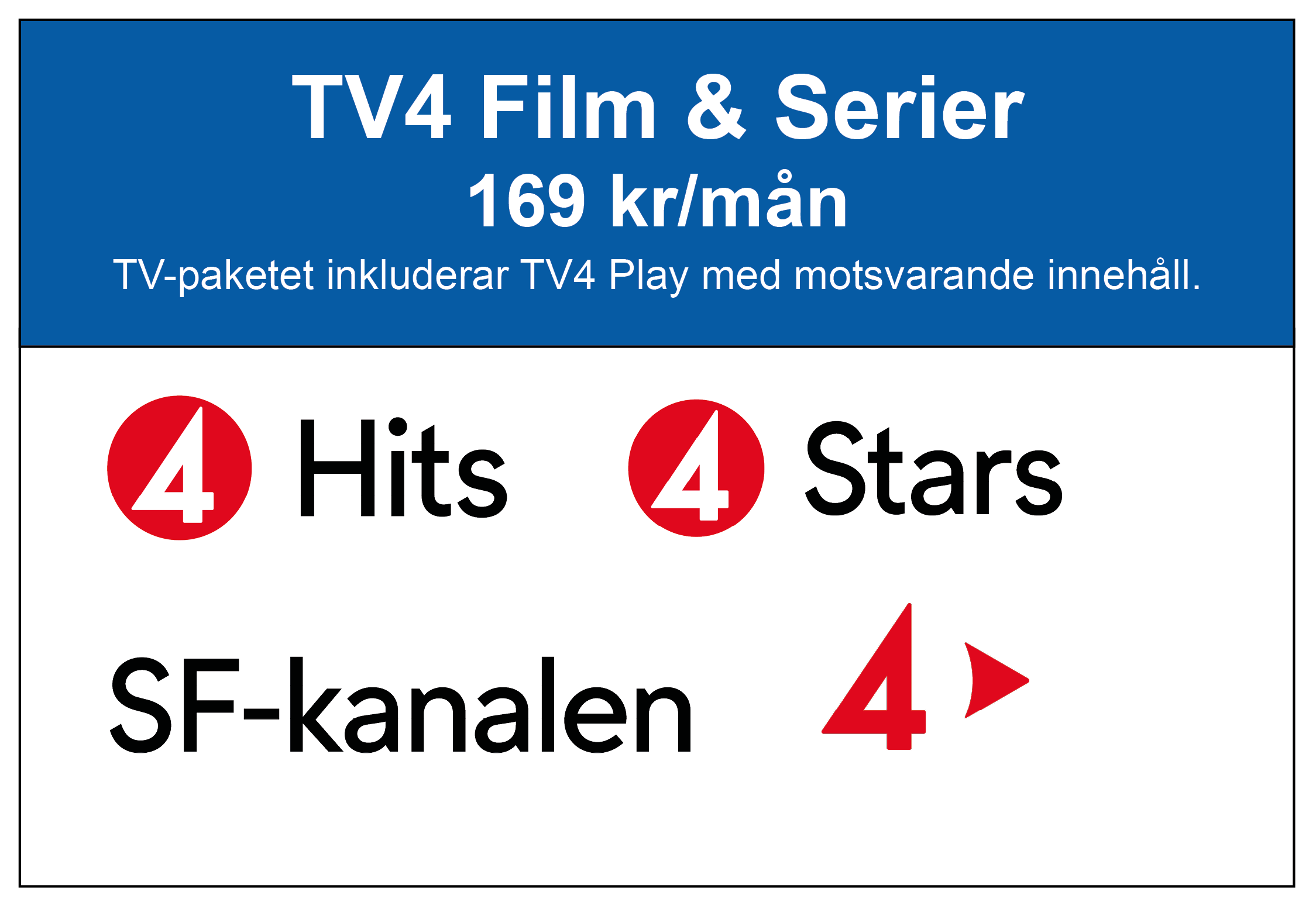 I det här TV-paketet ingår TV4 Play, där du får tillgång till ett innehåll som motsvarar TV-paketet du beställer.