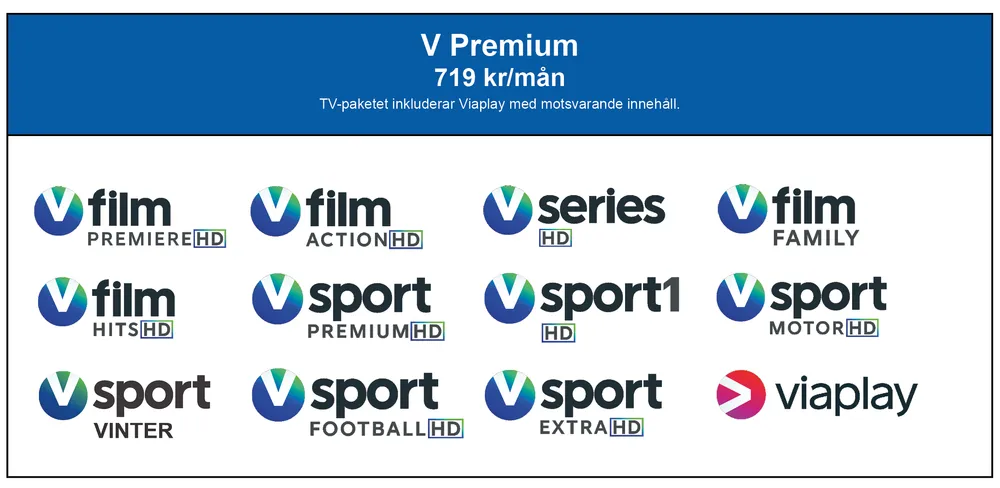 V sport premium – Sveriges absolut vassaste fotbollskanal. Här visas de viktigaste och största fotbollshöjdpunkterna. V Sport Premium är huvudkanal för Premier League, men erbjuder även ett urval av de hetaste matcherna från Bundesliga. Se världens bästa fotbollsspelare inramas med exklusiva studiosändningar där några av landets främsta programledare och experter gör dig sällskap. Självklart sänds de flesta av våra matcher med svensk kommentering.