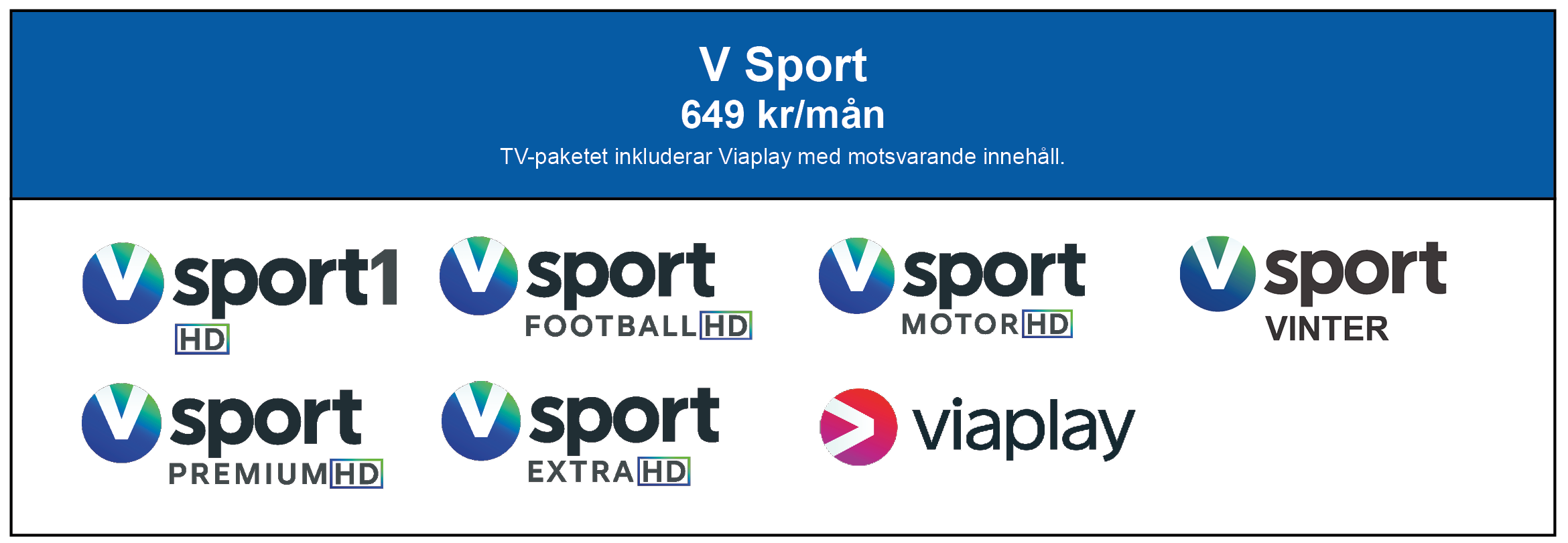 Med V sport får du den bästa sporten från världens största ligor och serier. Njut av sport i världsklass med rättigheter som Premier League, Bundesliga, UEFA Conference League och UEFA Europa League, NHL, Formel 1, MotoGP och mycket, mycket mer. Dessutom ingår streamingtjänsten Viaplay med all sport och du kan självklart ta del av innehållet var och när du vill.